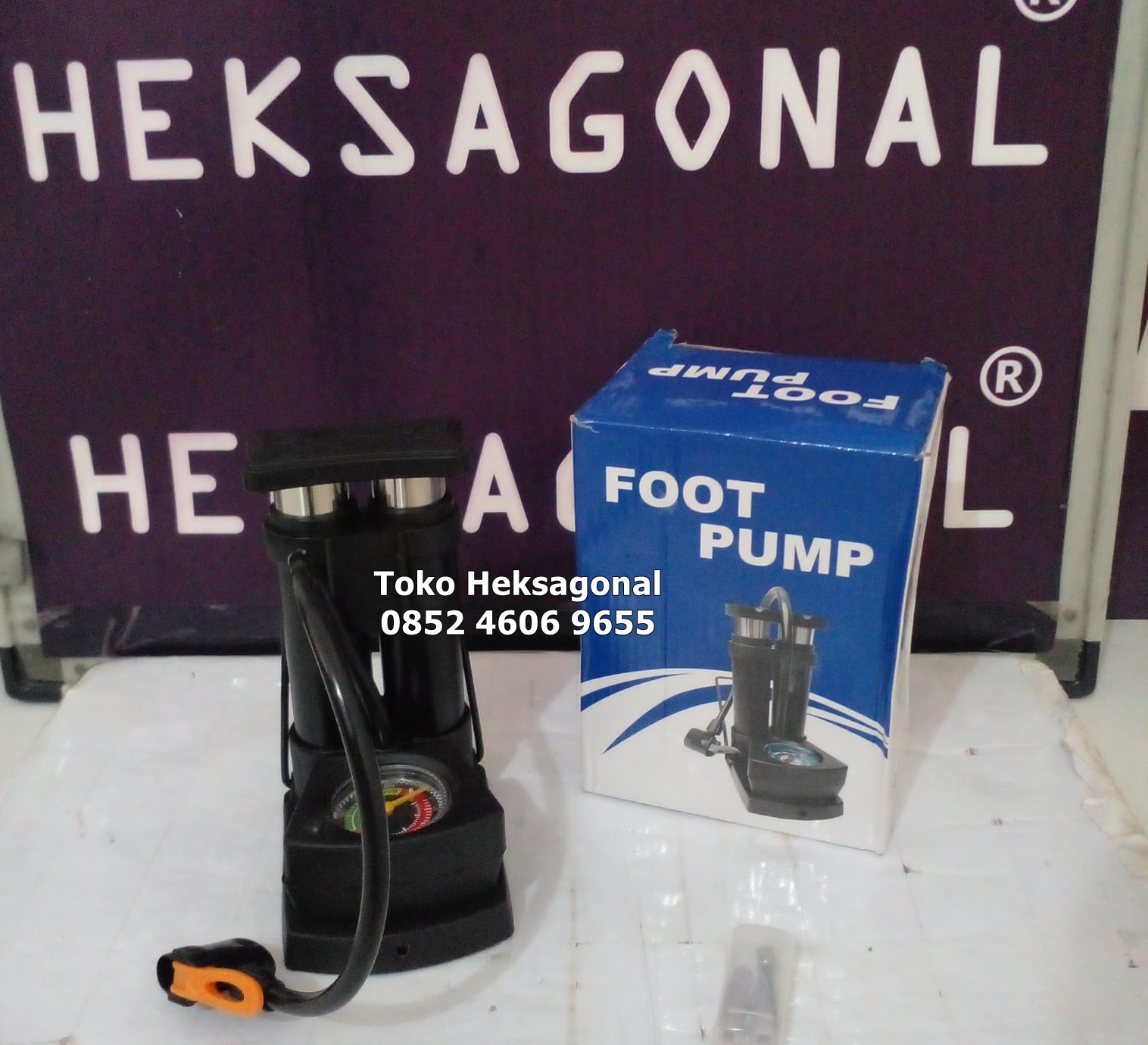 Ban kempis di tengah jalan atau butuh mengisi angin dengan cepat dan praktis anda bisa menghubungi Toko Heksagonal Samarinda. Kami menyediakan berbagai jenis pompa ban untuk motor, mobil, hingga sepeda. Kami menjamin, alat yang Anda butuhkan selalu ready stock, jadi Anda tidak perlu panik saat mendadak memerlukannya.